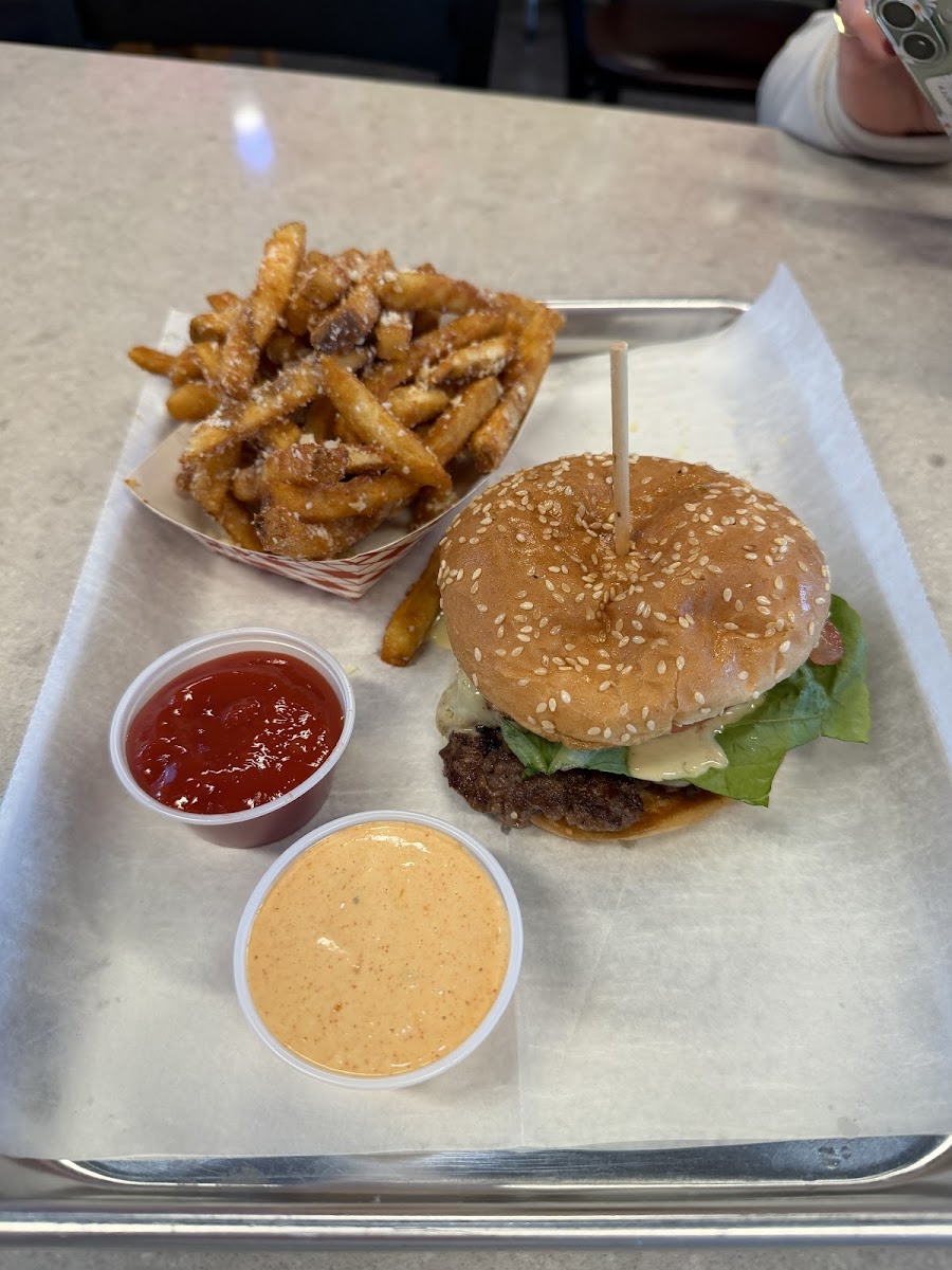 The menu goes beyond burgers without losing focus. The crispy chicken sandwich is brined overnight, which keeps it juicy, and the loaded fries come buried under melted cheese, bacon bits, and a drizzle of house sauce that reminds me of classic diner thousand island. I once brought a friend who doesn’t even eat red meat, and she left raving about the spicy chicken wrap and onion rings. Real reviews from locals echo that vibe; most mention generous portions, friendly service, and that comforting, old-school diner feeling that’s getting harder to find.